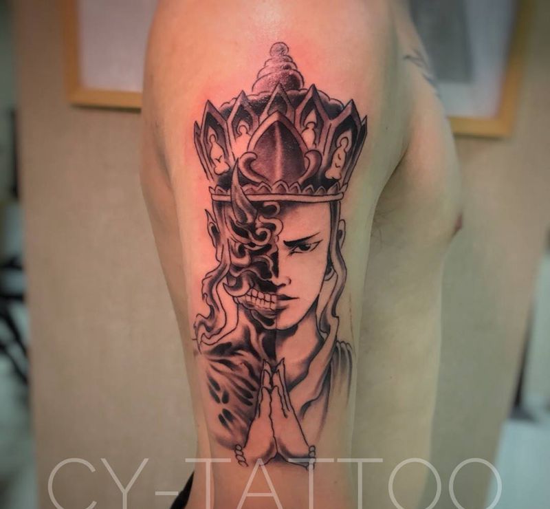 • 纹身吧推荐的披肩图腾半胛纹身图案作品展示