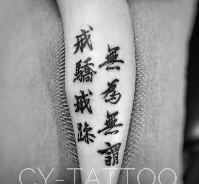 当前位置: 首页 >福建省泉州市纹身店-诚毅刺青纹身图案>书法纹身纹身图片_成品手臂腿部传统国画字符清新原创几何纹身图案