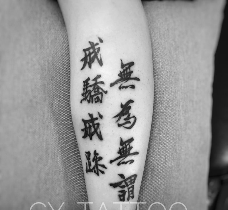 当前位置: 首页 >福建省泉州市纹身店-诚毅刺青纹身图案>书法纹身纹身图片_成品手臂腿部传统国画字符清新原创几何纹身图案