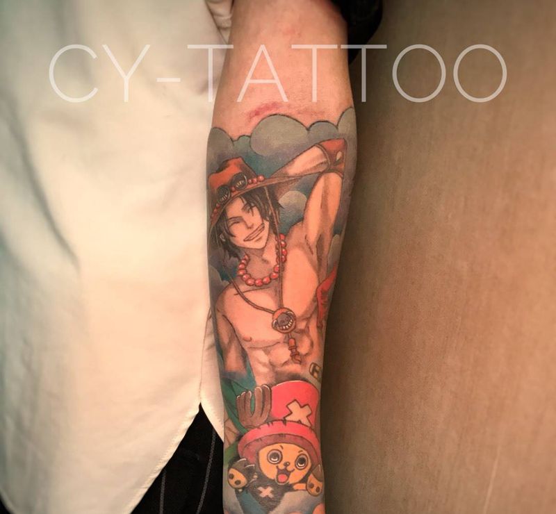 当前位置: 首页 >福建省泉州市纹身店-诚毅刺青纹身图案>海贼王主题花臂纹身图片_欧美写实人物动物成品手臂腿部纹身图案