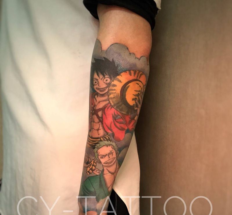 海贼王主题花臂纹身图片_欧美写实人物动物成品手臂腿部纹身图案