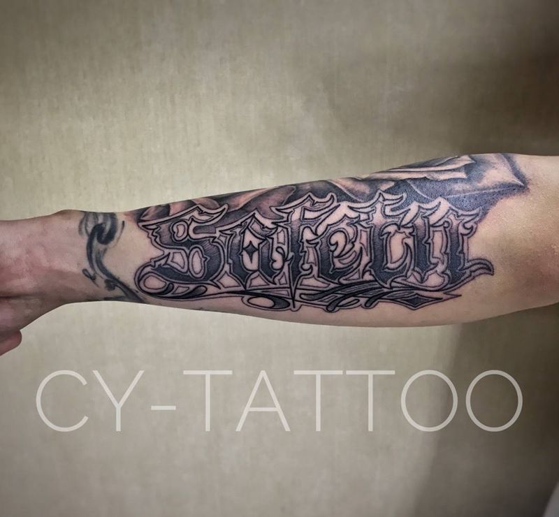 当前位置: 首页 >福建省泉州市纹身店-诚毅刺青纹身图案>原创花体英文纹身图片_原创几何字符清新欧美图腾手臂腿部成品胸部纹身图案
