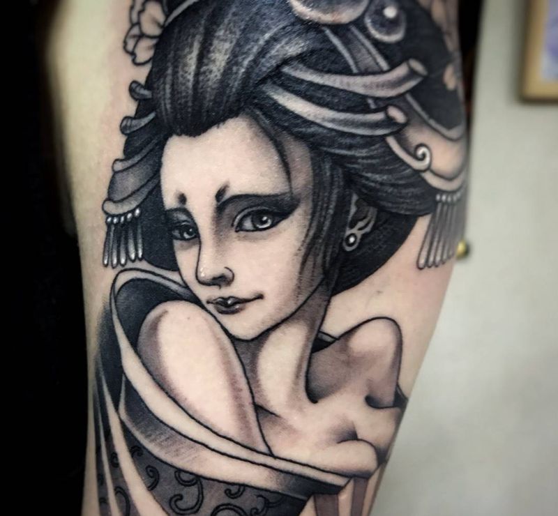 当前位置: 首页 >福建省泉州市纹身店-诚毅刺青纹身图案>艺妓纹身图片_人物习俗传统肖像国画成品清新手臂腿部胸部纹身图案