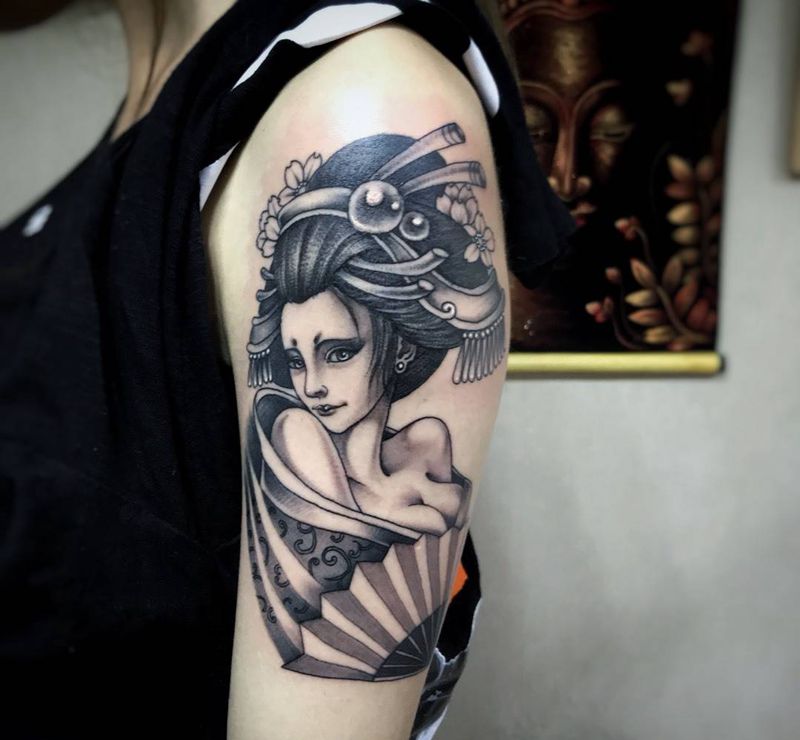 当前位置: 首页 >福建省泉州市纹身店-诚毅刺青纹身图案>艺妓纹身图片_人物习俗传统肖像国画成品清新手臂腿部胸部纹身图案