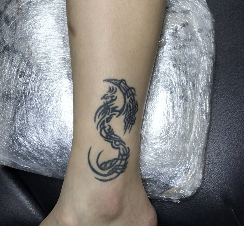• T网红王老大花腿龙纹身图片_腿部新传统纹身图案