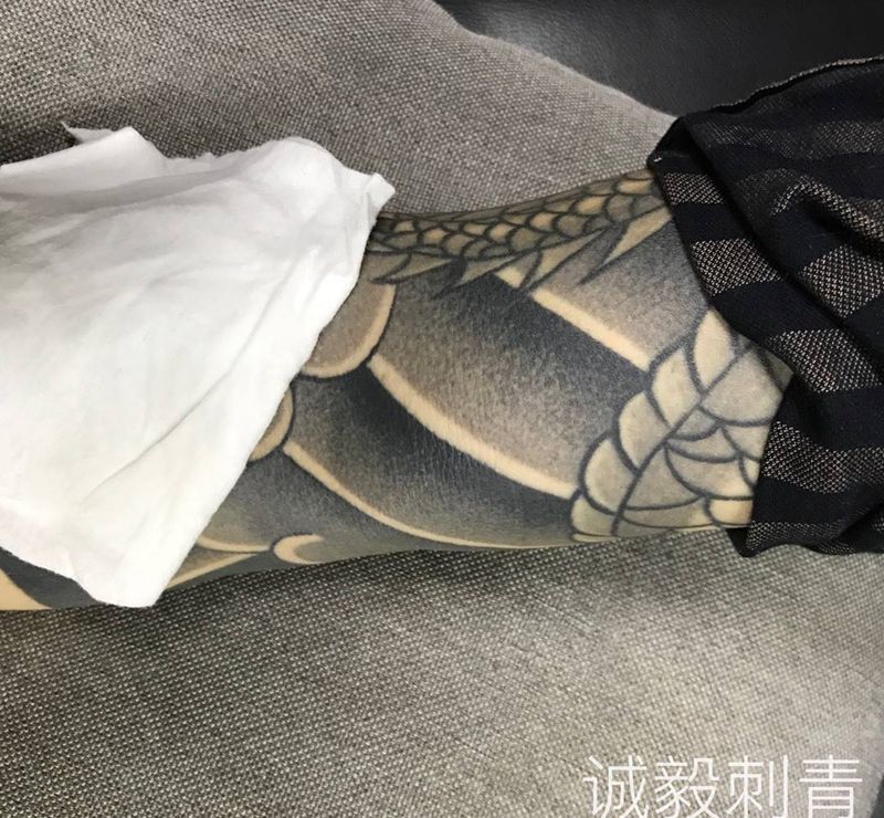 • T网红王老大花腿龙纹身图片_腿部新传统纹身图案