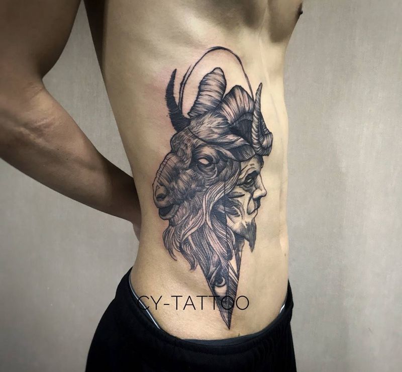 速写风撒旦纹身图片_欧美肖像鬼神动物手臂腿部腹部腰部纹身图案