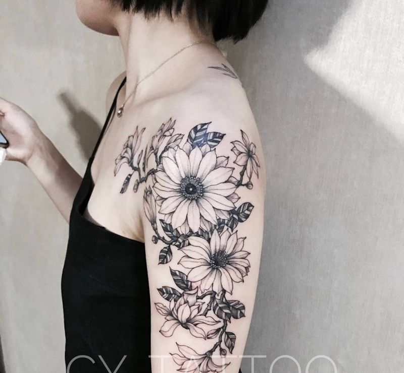 • 女性大花胸纹身_43张霸气漂亮的女性大花胸纹身图案作品