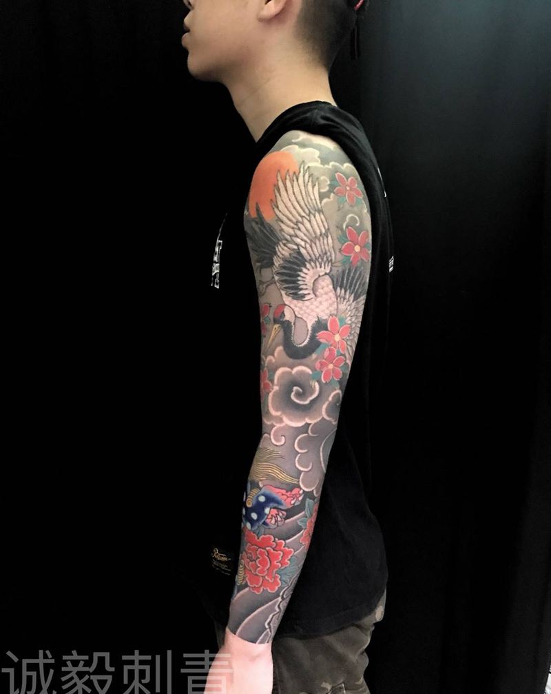 原创仙鹤唐狮花臂纹身图片_成品手臂传统习俗原创动物鬼神腿部肩部纹身图案