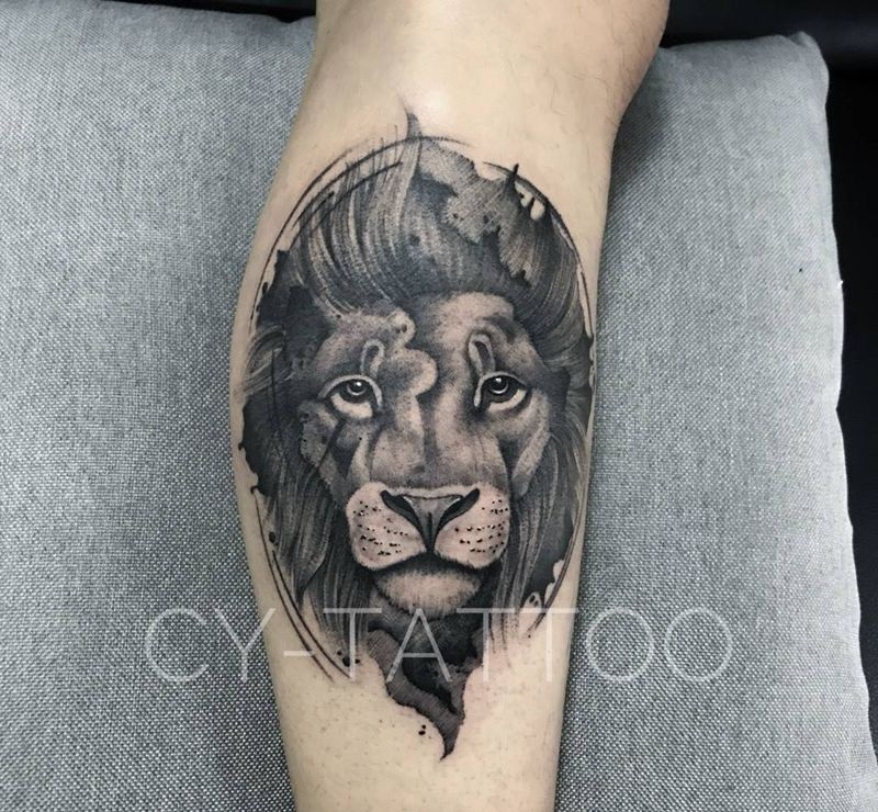 当前位置: 首页 >福建省泉州市纹身店-诚毅刺青纹身图案>水墨狮子纹身图片_手臂腿部欧美写实水墨纹身图案
