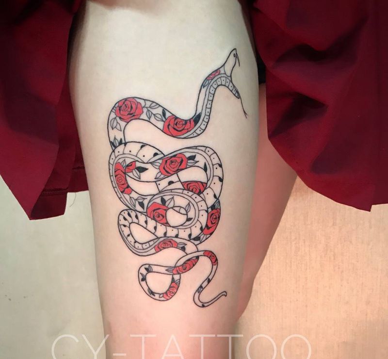 当前位置: 首页 >福建省泉州市纹身店-诚毅刺青纹身图案>美女蛇纹身图片_腿部手部水彩New School纹身图案