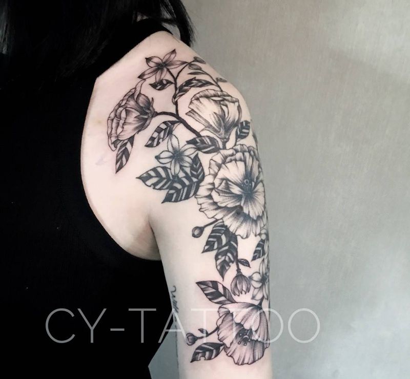 当前位置: 首页 >福建省泉州市纹身店-诚毅刺青纹身图案>桔梗花肩纹身图片_原创植物几何欧美清新写实手臂肩部胸部成品纹身图案