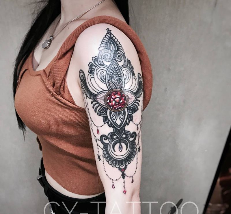• 纹身吧推荐的披肩图腾半胛纹身图案作品展示