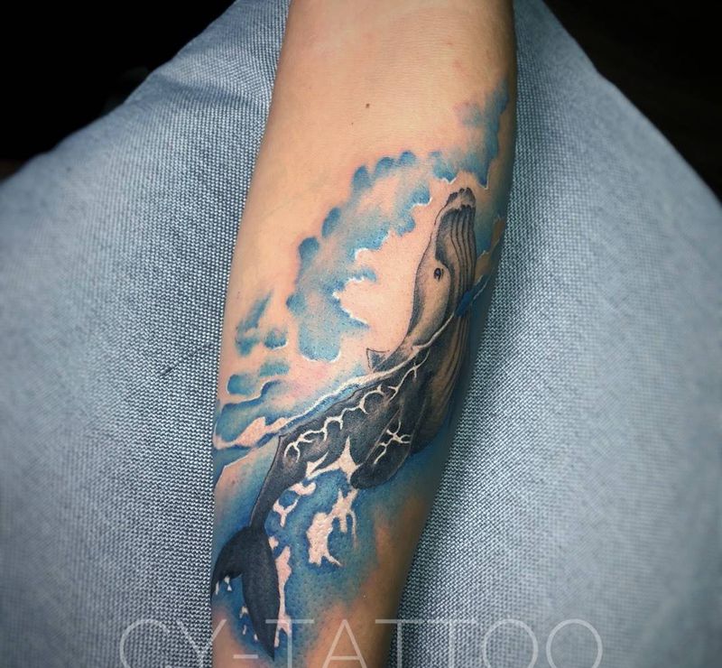 当前位置: 首页 >福建省泉州市纹身店-诚毅刺青纹身图案>鲸鱼纹身图片_手臂腿部水彩欧美写实纹身图案