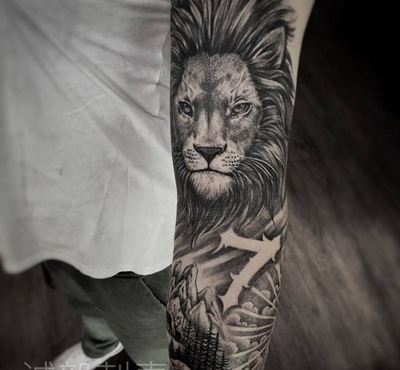 当前位置: 首页 >福建省泉州市纹身店-诚毅刺青纹身图案>原创写实花臂纹身图片_手臂腿部欧美写实新传统花臂花腿原创纹身图案