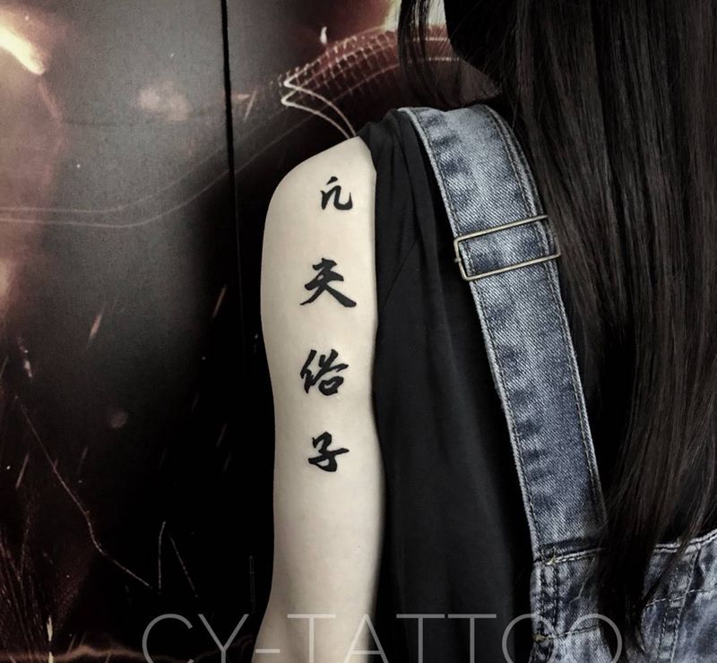 当前位置: 首页 >福建省泉州市纹身店-诚毅刺青纹身图案>书法纹身图片_手臂腿部水墨花体字纹身图案