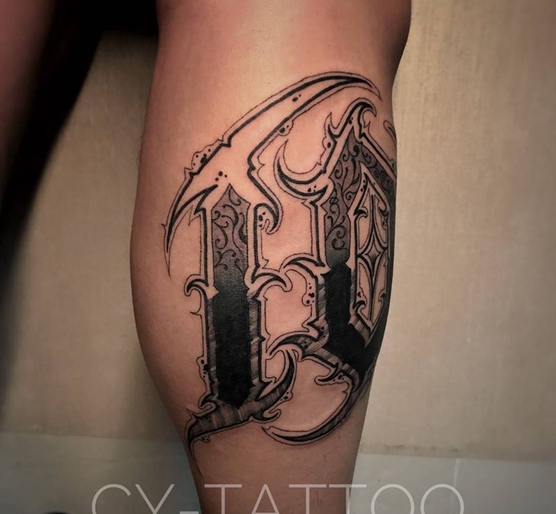 当前位置: 首页 >福建省泉州市纹身店-诚毅刺青纹身图案>原创花体数字纹身图片_手臂腿部花体字几何纹身图案