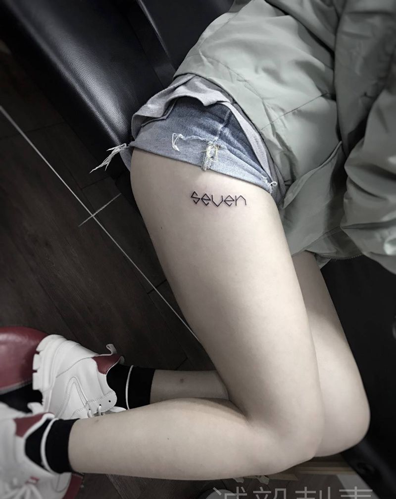 当前位置: 首页 >福建省泉州市纹身店-诚毅刺青纹身图案>seven纹身图片_腿部手臂花体字Old School纹身图案