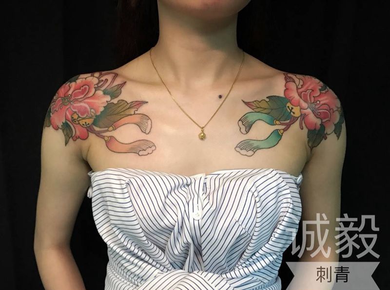当前位置: 首页 >福建省泉州市纹身店-诚毅刺青纹身图案>肩花纹身图片_胸部肩部新传统New School纹身图案