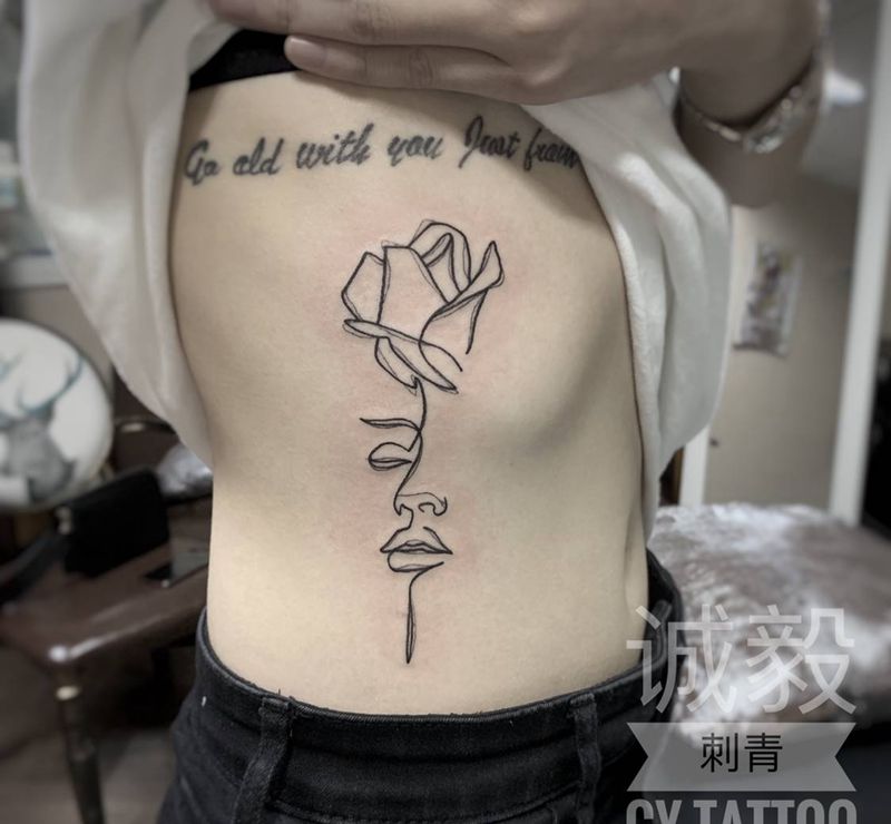 侧腰小清新纹身纹身图片_腹部腰部点刺Old School纹身图案