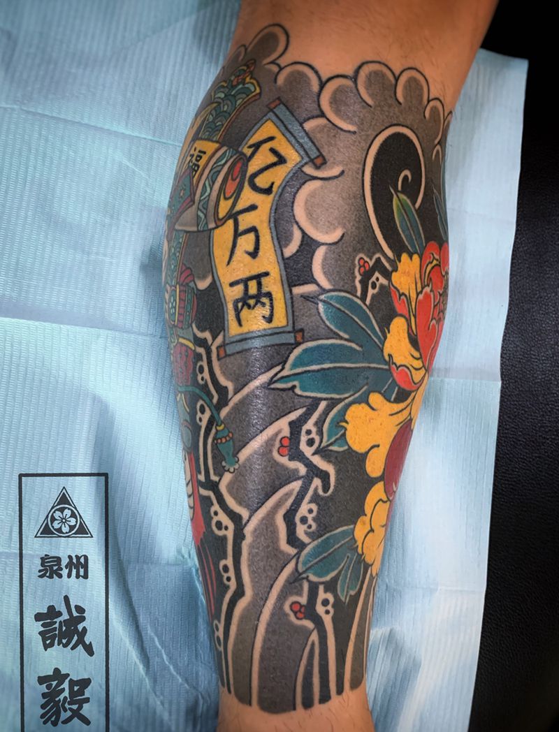 • T网红王老大花腿龙纹身图片_腿部新传统纹身图案