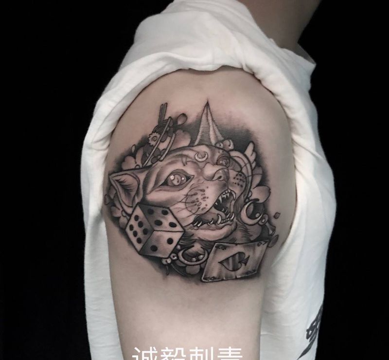 当前位置: 首页 >福建省泉州市纹身店-诚毅刺青纹身图案>猫咪纹身图片_胸部手臂New School欧美写实纹身图案
