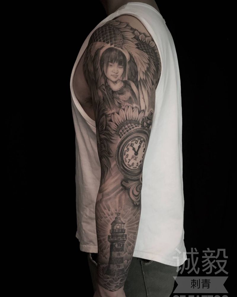 当前位置: 首页 >福建省泉州市纹身店-诚毅刺青纹身图案>原创花臂纹身图片_手臂腿部欧美写实新传统花臂纹身图案