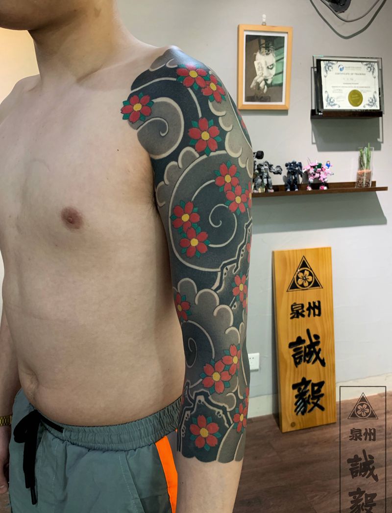 当前位置: 首页 >福建省泉州市纹身店-诚毅刺青纹身图案>圆三针老传统花臂纹身图片_手臂腿部老传统新传统纹身图案
