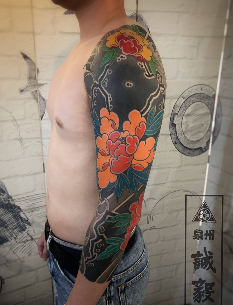 当前位置: 首页 >福建省泉州市纹身店-诚毅刺青纹身图案>原创传统花臂,大臂部分遮盖旧纹纹身图片_手臂腿部新传统老传统纹身图案