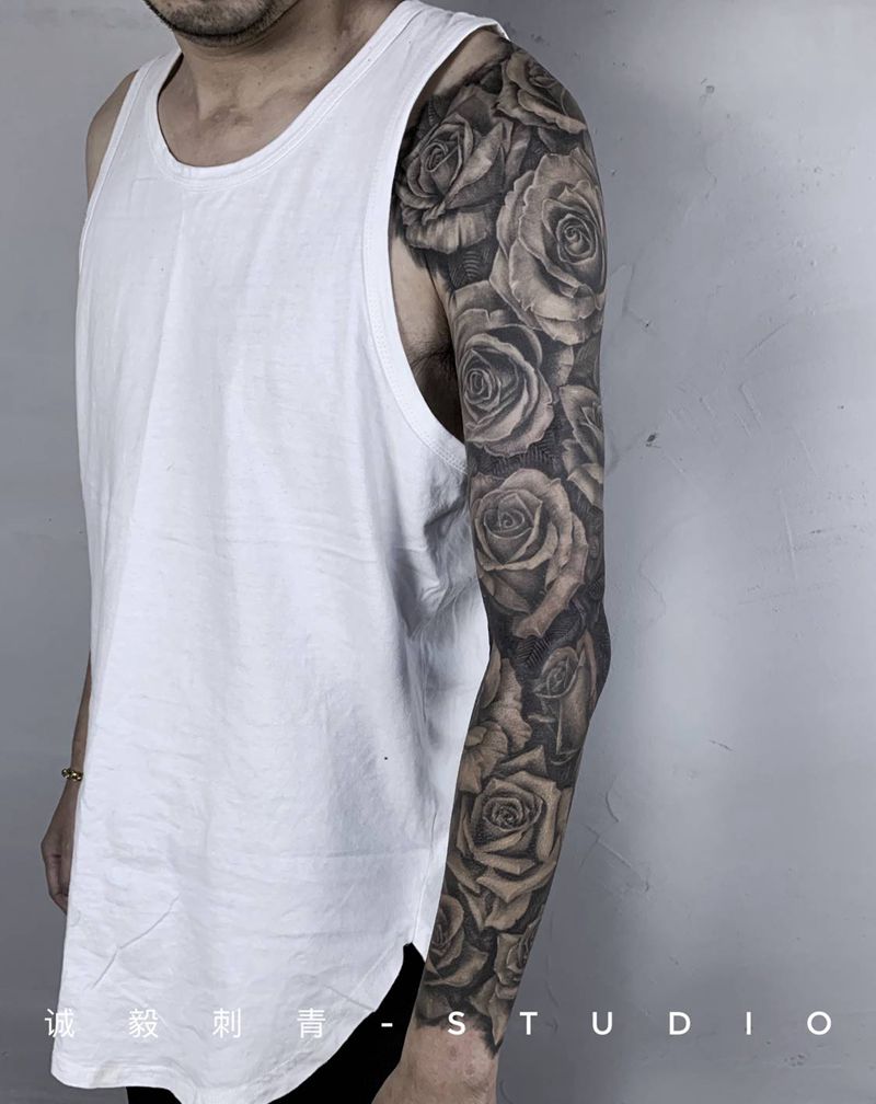 浪漫玫瑰花花臂纹身图片_手臂腿部欧美写实新传统纹身图案