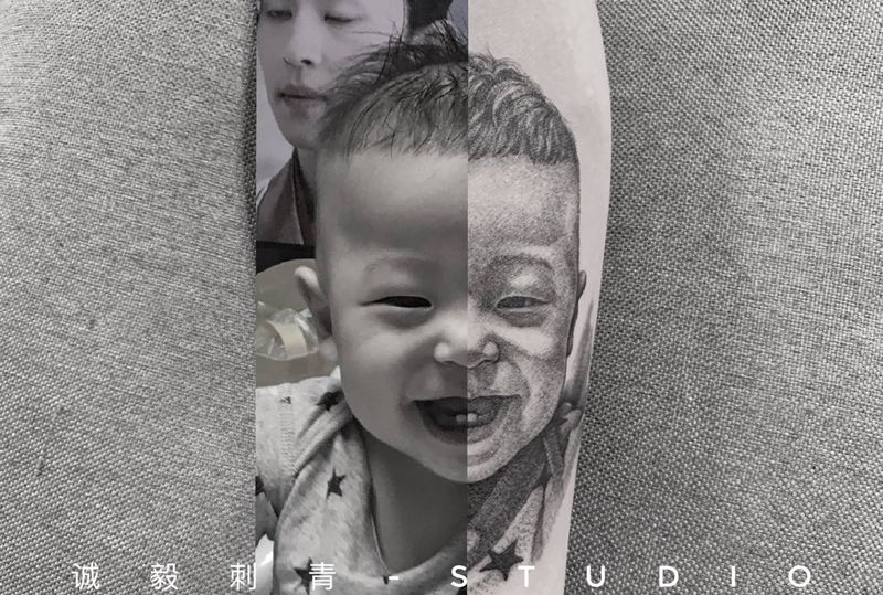 当前位置: 首页 >福建省泉州市纹身店-诚毅刺青纹身图案>幼儿肖像纹身图片_手臂欧美写实纹身图案