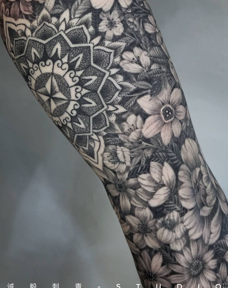 当前位置: 首页 >福建省泉州市纹身店-诚毅刺青纹身图案>花臂最新款纹身图片_手臂腿部欧美写实新传统纹身图案