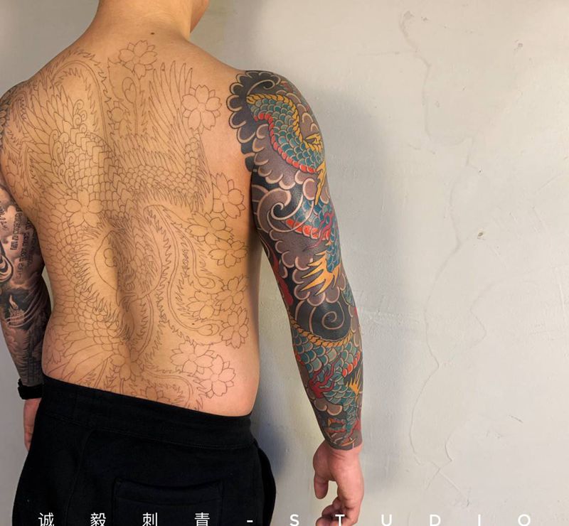 当前位置: 首页 >福建省泉州市纹身店-诚毅刺青纹身图案>原创神龙花臂纹身图片_手臂腿部新传统老传统纹身图案