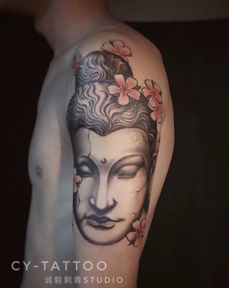 当前位置: 首页 >福建省泉州市纹身店-诚毅刺青纹身图案>睡佛纹身图片_手臂腿部欧美写实新传统佛纹身图案