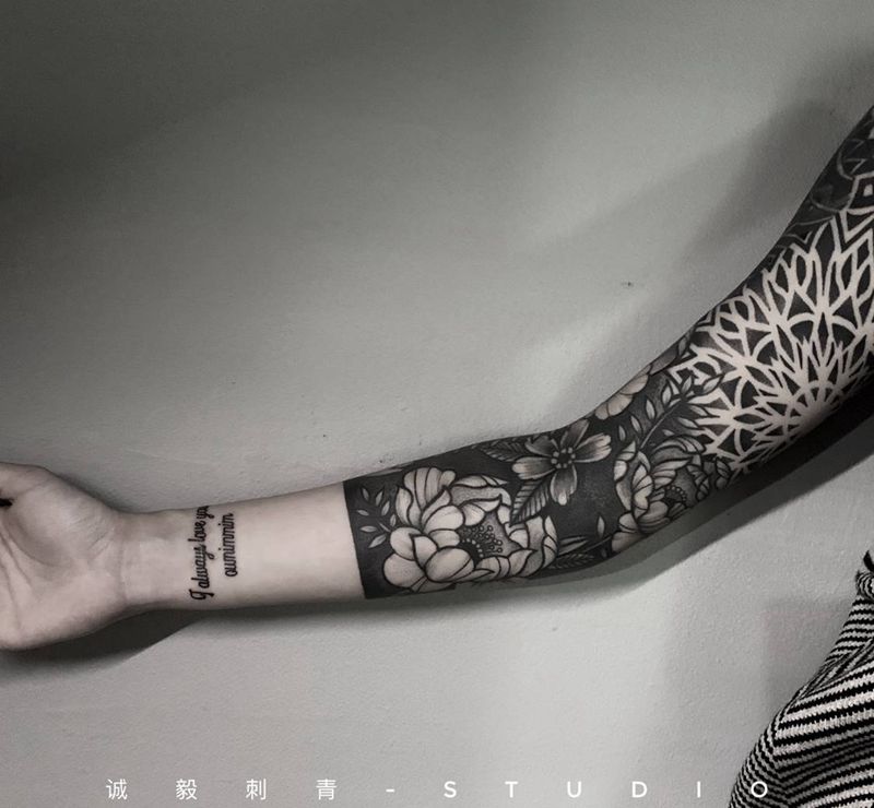 当前位置: 首页 >福建省泉州市纹身店-诚毅刺青纹身图案>点刺风格花臂纹身图片_手臂肩部老传统点刺纹身图案