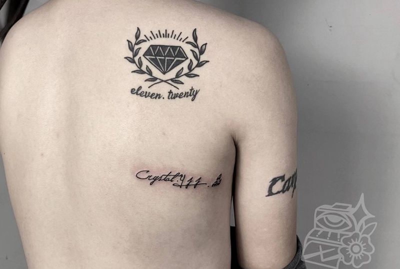 小清新英文纹身纹身图片_手臂肩部花体字Old School小清新英文纹身图案