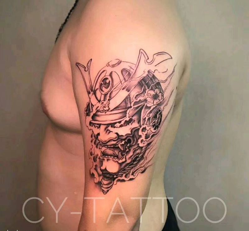 鬼武士未完纹身图片_手臂传统鬼神成品纹身图案