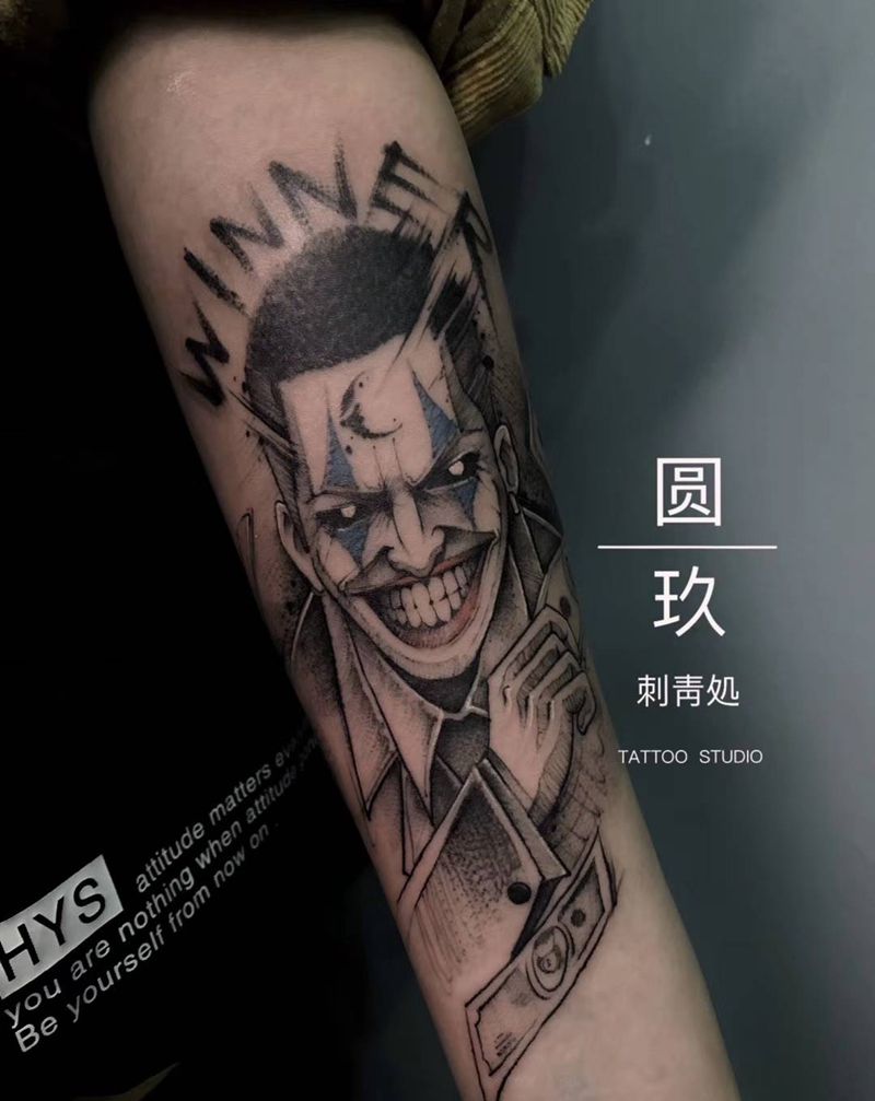 当前位置: 首页 >福建省三明市纹身店-圆玖刺青処纹身图案>原创小丑纹身图片_手臂点刺纹身图案