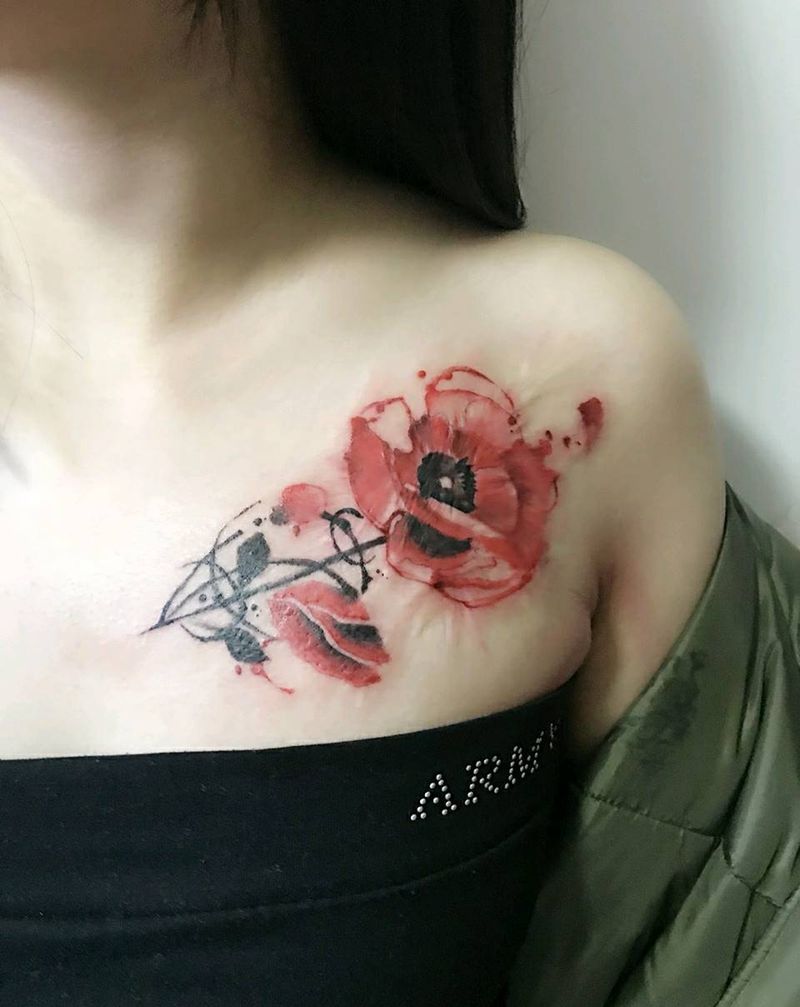 • 女性大花胸纹身_43张霸气漂亮的女性大花胸纹身图案作品