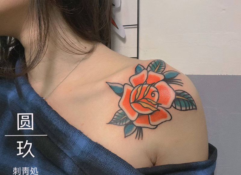 原创设计oldschool肩花纹身图片_肩部Old School纹身图案