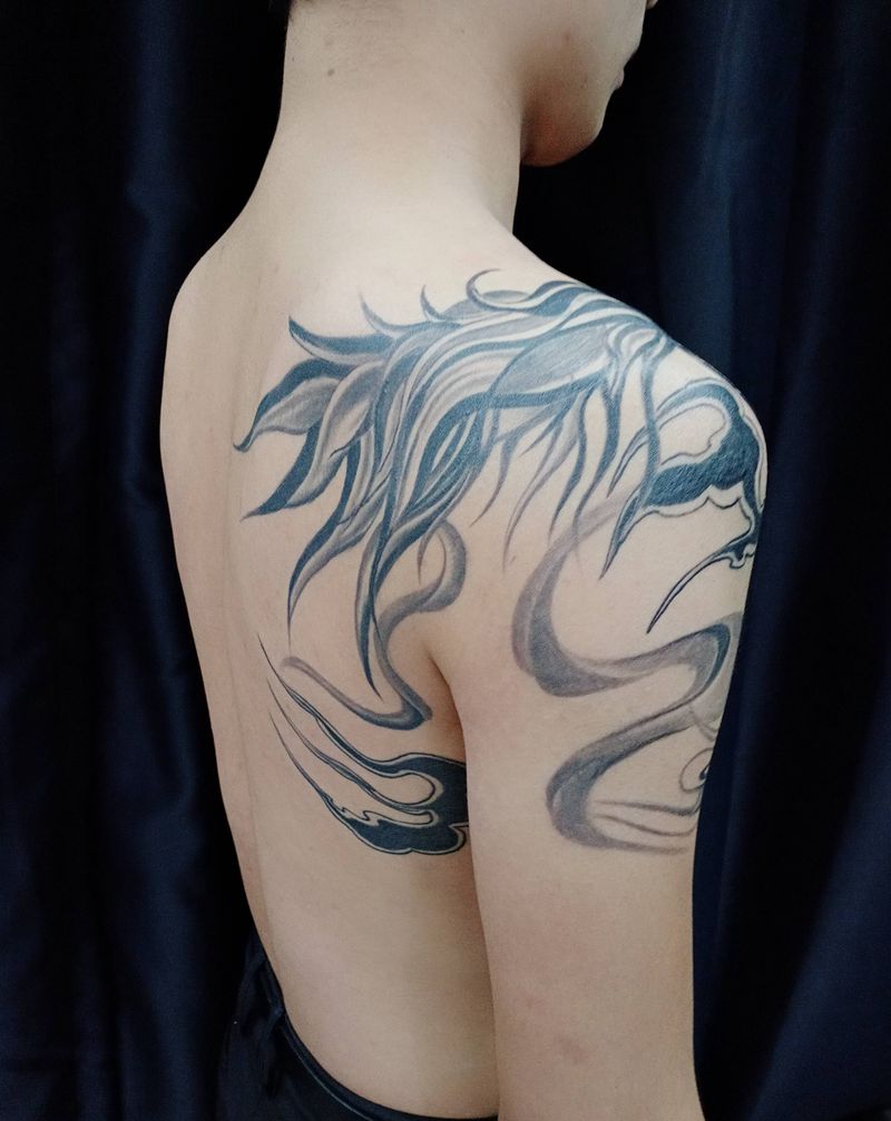当前位置: 首页 >福建省泉州市纹身店-墨韵纹身会所纹身图案>过肩麒麟纹身图片_胸部手臂图腾纹身图案