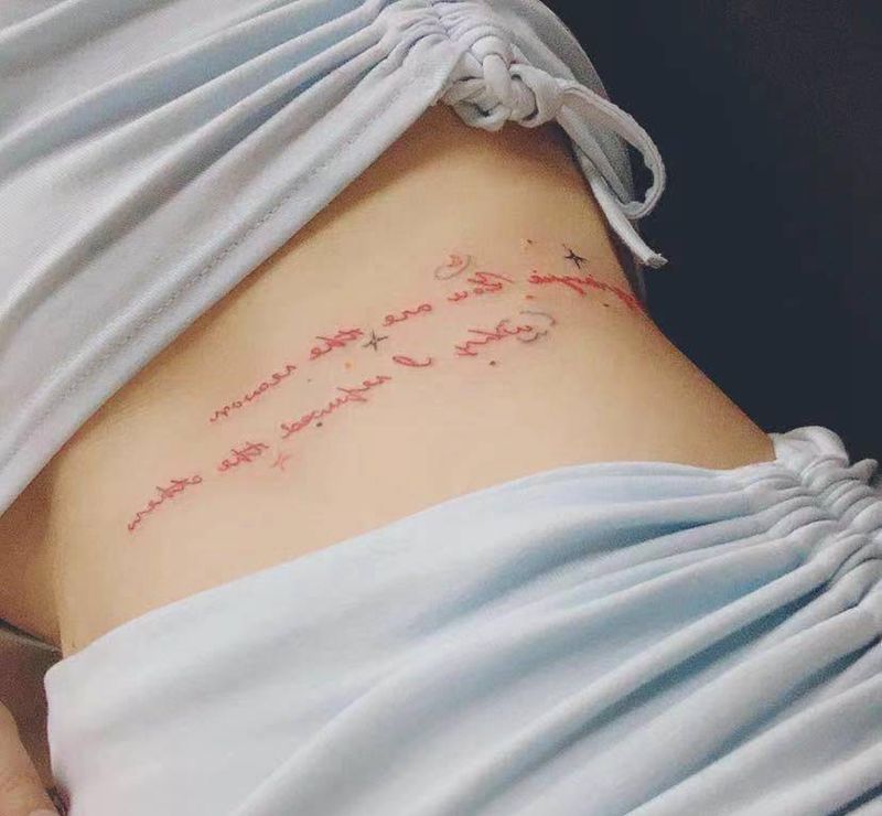 • T关于私处得爱!纹身图片_成品腹部清新字符图腾纹身图案