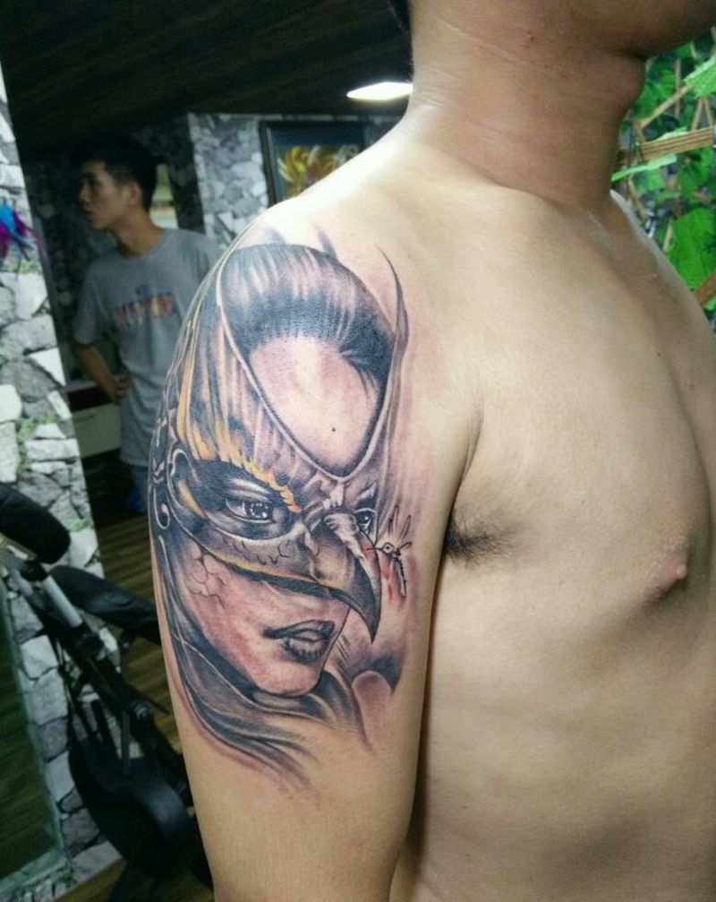 当前位置: 首页 >福建省泉州市纹身店-墨韵纹身会所纹身图案>大臂欧美人物写实纹身图片