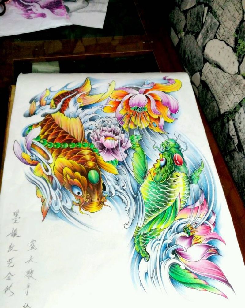 墨韵纹艺会所原创鲤鱼沐浴手稿纹身图片