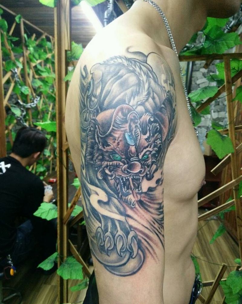 当前位置: 首页 >福建省泉州市纹身店-墨韵纹身会所纹身图案>大臂貔貅纹身图片