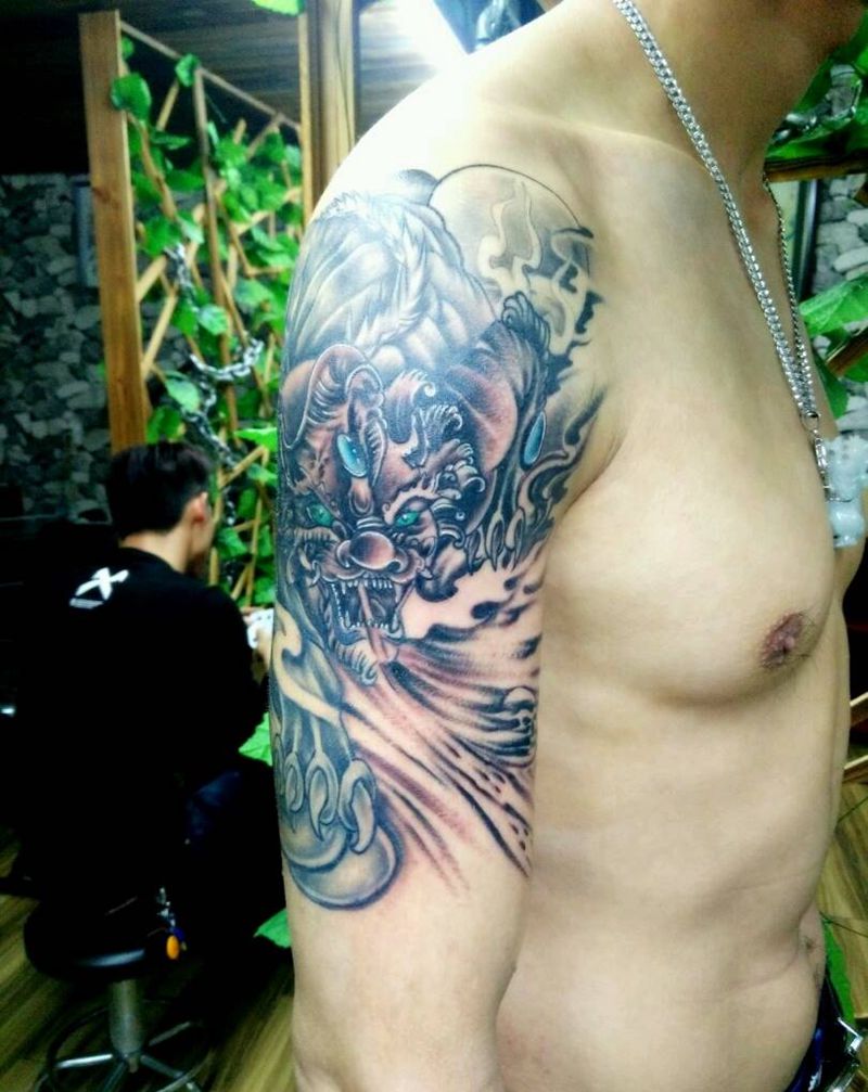 当前位置: 首页 >福建省泉州市纹身店-墨韵纹身会所纹身图案>大臂貔貅纹身图片