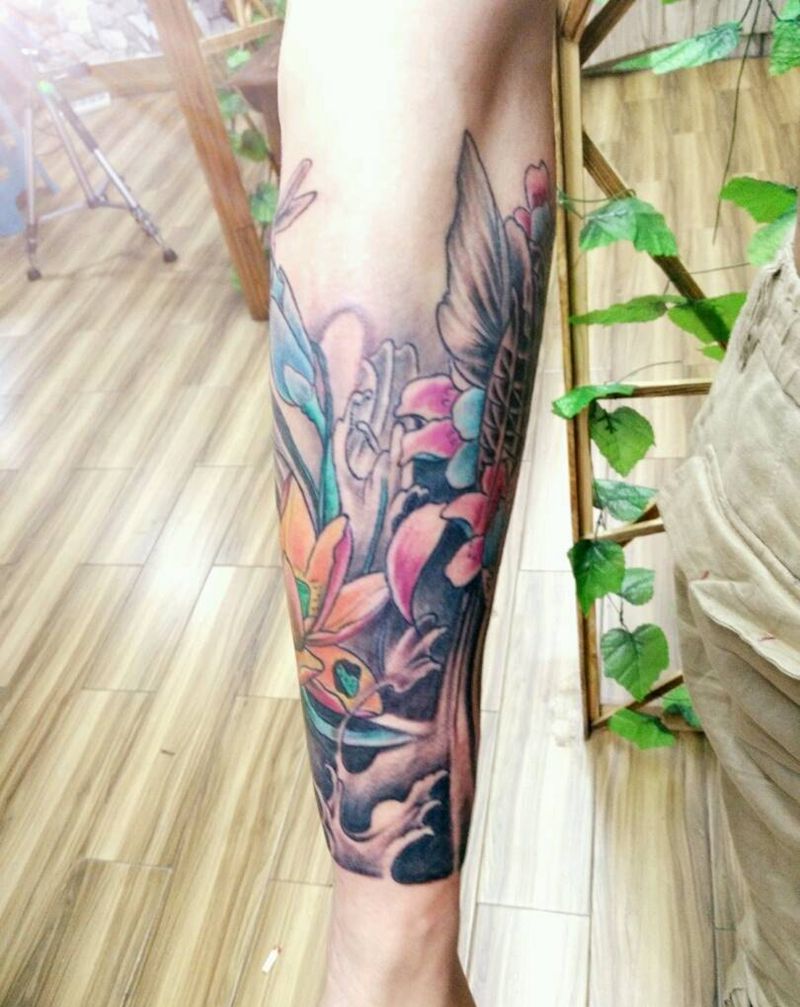 当前位置: 首页 >福建省泉州市纹身店-墨韵纹身会所纹身图案>鲤鱼包小臂纹身图片