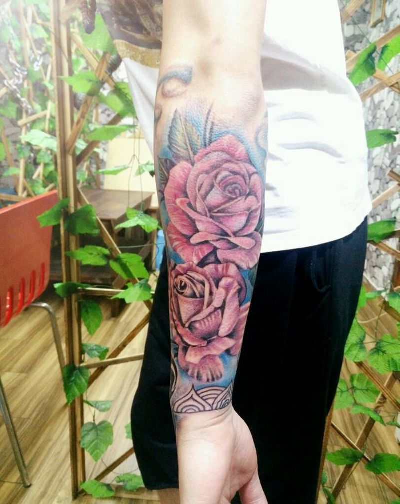 欧美写实小花臂纹身图片