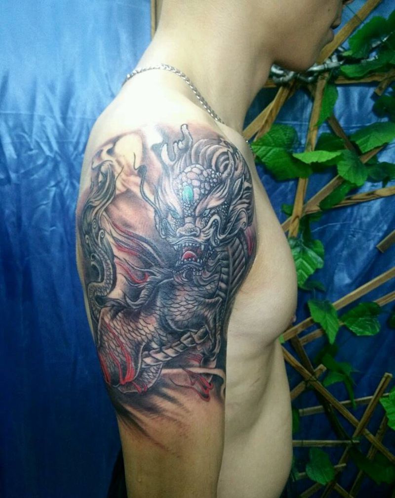 • T网红王老大花腿龙纹身图片_腿部新传统纹身图案