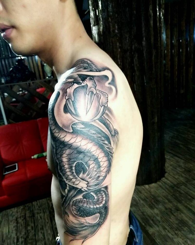 当前位置: 首页 >福建省泉州市纹身店-墨韵纹身会所纹身图案>披肩龙纹身图片